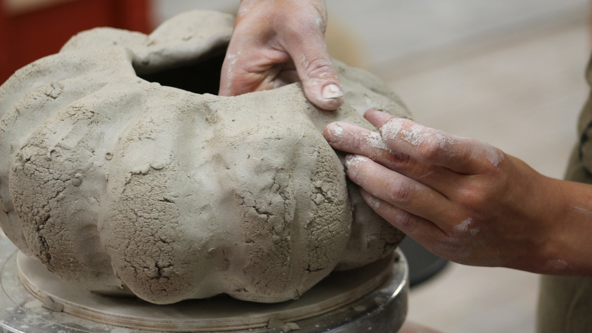 De sex kvarvarande keramikerna kämpar för att bli veckans vinnare. I drejar-utmaningen gäller det att dreja så många bägare som möjligt på 15 minuter - alla som misslyckas döms ut. Deltagarna får även skapa en kanna formad som en frukt, och i huvud-utmaningen drejar de två jättestora vaser med hjälp av den gamla, spännande tekniken pit-firing ute på Staffordshires landsbygd, vilket kräver att de campar över natten. Görs det fantastisk keramik - eller är det dags att packa väskan? Del 5 av 8.
